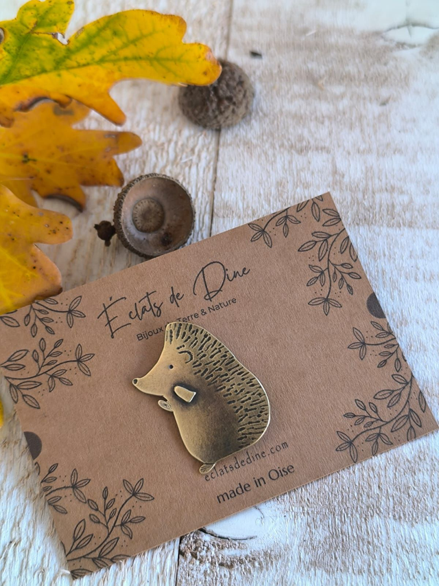 - Un pin’s Hérisson, petit compagnon emblématique des forêts d’automne, fabriqué à la main.