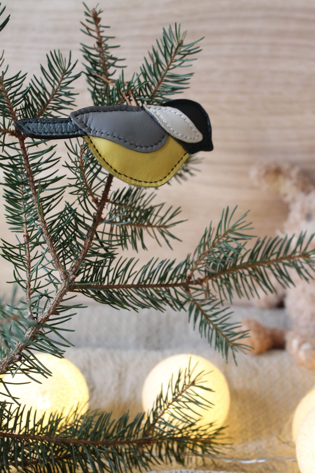 Adopte cette petite mésange hivernale, entièrement réalisée en cuir et cousue main. Légère et poétique, elle apporte une touche de magie là où tu choisis de l’accrocher : au sapin, à une poignée de porte, à une branche décorative… ou simplement en guise de petite lueur dans ton intérieur.